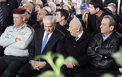 Gantz, Netanyahu, Peres and Barak (Photo: Moti Kimhi)