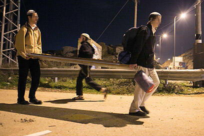 Activists on way out of Oz Zion (Photo: Ohad Zwigenberg)