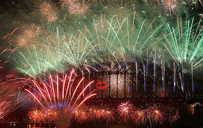 In Australia, a balmy summer night was split by 7 tons of fireworks fired from rooftops and barges in Sydney, many cascading from the city's Harbor Bridge, in a $6.9 million pyrotechnic extravaganza billed by organizers as the world's largest.