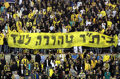 Beitar fans with sign: Beitar will be pure forever (Photo: Haim Zach)
