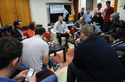 Feiglin at Tel Aviv's Barnoar gay youth center (Photo: Yaron Brener)