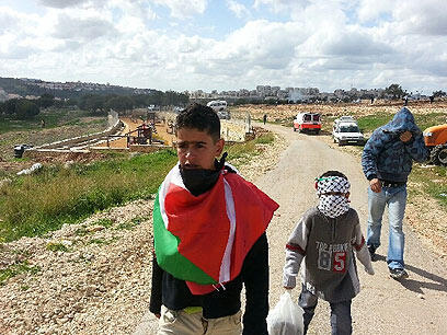 - During the march, several youngsters began hurling stones at IDF soldiers standing on the other side of the fence, with the Palestinian officials just several hundred meters behind them. The security forces responded with crowd dispersal means.