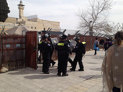 Police enter Mughrabi Gate (Photo: Adam Ze'evi)