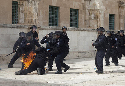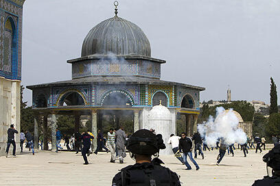 Jerusalem Police forces on Friday stormed the Temple Mount compound through the Old City's Mughrabi Gate after Arabs threw stones in their direction. The officers dispersed the rioters using stun grenades.