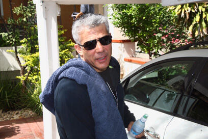 'l'll explain.' Lapid outside his home Thursday morning (Photo: Moti Kimchi)