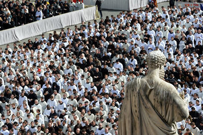 - In a gesture to Christians in the East, the pope prayed with Eastern rite Catholic patriarchs and archbishops before the tomb of St. Peter at the start of the Mass and the Gospel was chanted in Greek rather than the traditional Latin.