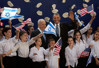 Obama, Peres and children's choir (Photo: AP)