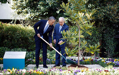 Obama planted a seedling in the courtyard of the President’s Residence. He then told his hosts that he was honored to be there, walking through gardens in which so much history had taken place, and that he was honored to be doing so with Peres, a man looked up to not only by Israelis, but by all who value peace.