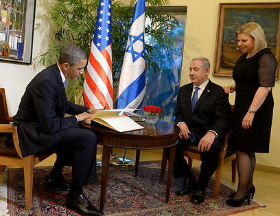 Prior to his meeting with Netanyahu, Obama met with the prime minister's wife Sara and the couple's son, Yair. After a brief conversation with the couple as well with as members of the PM's bureau, the US president signed the prime minister's guestbook.