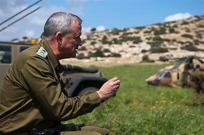 Last Wednesday, Ynet reporters accompanied Gantz to IDF training grounds in the Jordan Valley to observe an exercise of the Givati Brigade's Shaked Battalion. The army chief ran behind the fighters, who were using live fire while storming a target simulating a Lebanese mountain range controlled by Hezbollah terrorists. The army chief was obviously enjoying himself.
