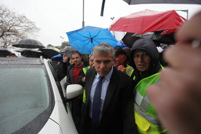 Yair Lapid on way to cabinet meeting (Photo: Gil Yohanan)