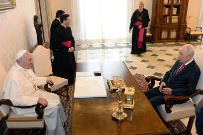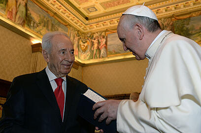 Peres with Pope Francis at the Vatican (Photo: Kobi Gideon, GPO)