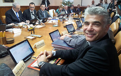- Lapid at cabinet meeting (Photo: Boaz Fyler)