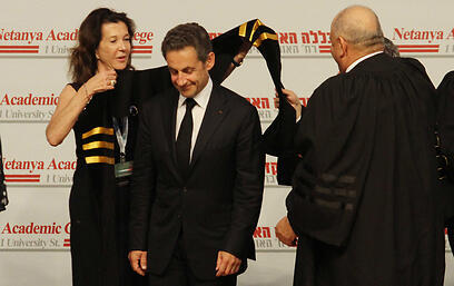 Former French President Nicolas Sarkozy was awarded Wednesday an honorary degree by the Netanya Academic College for "his contribution to the State of Israel and the Jewish people."