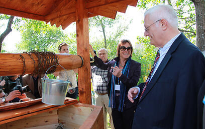 Peres' daughter, Prof. Tsvia Walden, and officials from the Minsk County participated in Thursday's festivities.
