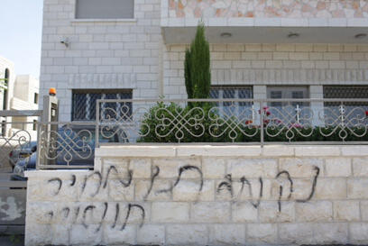 In another recent case, unknown vandals sprayed anti-Christian hate slogans on Jerusalem's Dormition Abbey and a car parked nearby. The slogans read, "Christians are monkeys", "Christians are slaves" and "Havat Maon" referring to a settler outpost in the West Bank.