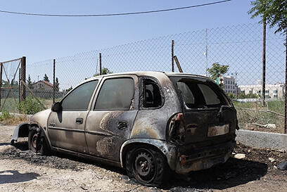 One of the torched vehicles (Photo: Ohad Zwigenberg)