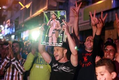 When Assaf struck up his signature anthem to Palestinian nationalism, "Raise the keffiyeh," fireworks erupted in Gaza and spectators jumped to their feet for the traditional "dabka" dance.