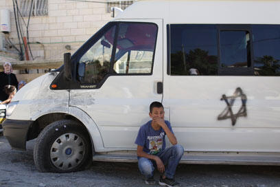 The Security Cabinet labeled "price tag" attackers as an illegal organization, but the hate crimes in the Jerusalem areas continue: The tires of 21 vehicles parked along a road in east Jerusalem's Beit Hanina neighborhood were slashed. Residents of the Arab neighborhood on Monday morning also discovered the words, "We do not remain silent in the face of stone throwing" spray painted on a wall. In addition, a Star of David was spray painted on one of the cars.