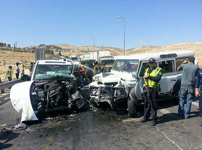 The accident took place at the Tekoa Junction in the West Bank at approximately 4 pm, apparently after the Palestinian car veered into the opposite lane. The Israeli car was carrying a couple and their four daughters.