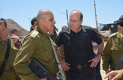 Southern Command chief Maj.-Gen.Turgeman (L) with Ya'alon during tour (Photo: Meir Ohayon)
