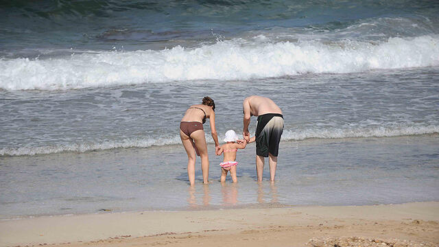 Family at Achziv beach (Photo: Avihu Shapira)