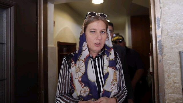 Justice Minister Livni at mourning tent (Photo: Ohad Zwigenberg)