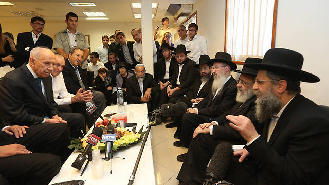 Peres at Yosef shiva (Photo: Gil Yochanan)