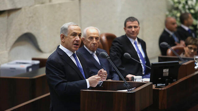 Netanyahu at the podium, Knesset opening plenum (Photo: Gil Yohanan)