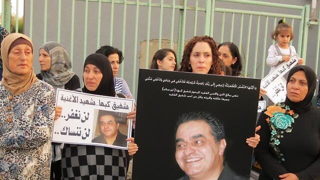 The protesters blocked the main road in Kafr Qara andwaved black flags with Kabha's photo. "The murderer killed Kabha's fans," the protesters called, while demanding the police to invest more resources in the investigation. Kabha, 53, was shot to death by two assailants on motorcycles when he was on his way to his home in Kafr Qara from performing at a wedding.