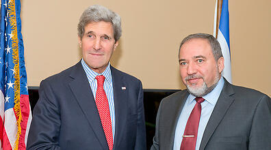 John Kerry and Avigdor Lieberman (Photo: Shahar Azran)
