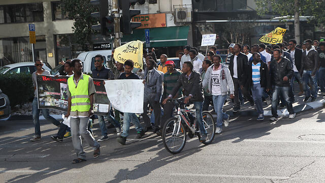 Former Tel Aviv City Council member Yael Dayan told Ynet: "I protest against the injustice caused by the new Infiltration Prevention Law. This law, which means arrest and no trial, will not be passed by the High Court of Justice. The people here are refugees and asylum seekers, not infiltrators. The government should allow them to work, that would solve a large part of the problem."