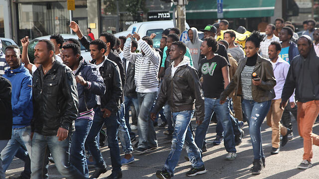 African asylum seekers in Israel took the streets of Tel Aviv for the second consecutive day Monday, while Interior Minister Gideon Sa'ar lashed out the eateries who are their main source of employment, telling Ynet that restaurant and cafe owners will not dictate government policy.