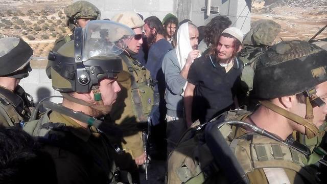 The settlers' arrest in Qusra (Photo: Zacharia Sadah, Rabbis for Human Rights)