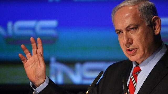 PM Netanyahu at INSS address, Tuesday (Photo: Motti Kimchi)