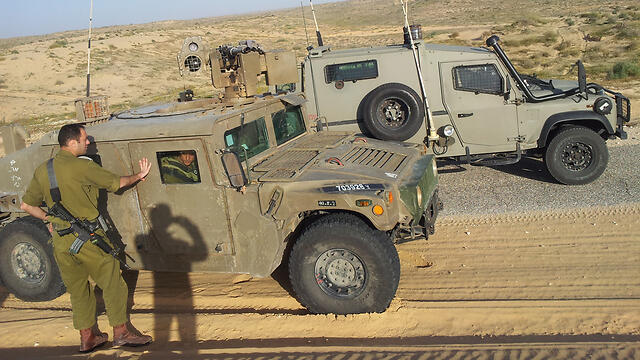 - IDF forces in armored vehicles near border (Photo: Yoav Zitun)