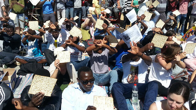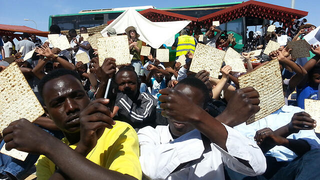 Eritrean and Sudanese asylum seekers were joined by human rights activists to conduct alternative Passover Seder in Holot detention center. 'Like the Jews, we also crossed the Egyptian desert, but we are not free here.'