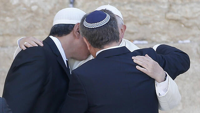 Pope Francis then embraced his good friend, Argentine Rabbi Abraham Skorka, and a leader of Argentina's Muslim community, Omar Abboud, both of whom joined his official delegation for the trip in a sign of interfaith friendship.