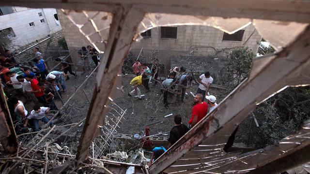 Residents examining the destruction caused by a Gaza rocket that hit a Hebron home (Photo: EPA)
