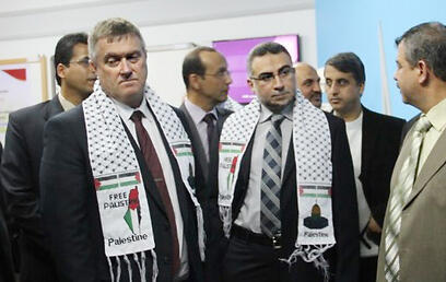 A photograph has emerged of UK Consul General to Jerusalem Alastair McPhail wearing a keffiyeh scarf that bears the image of a Palestinian flag superimposed over a map of the whole of Israel, West Bank and Gaza, with the words "Free Palestine" emblazoned next to it.