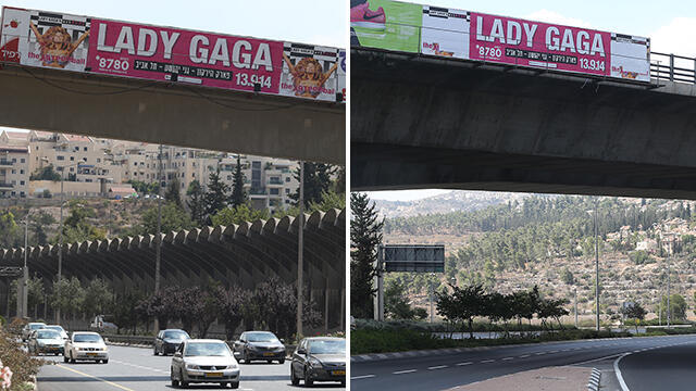 The billboards featuring the singer were installed by the "Rapid billboards" company in Jerusalem in an attempt to promote the concert. Recently, the slightly revealing photos hung up near the corner of Begin and Golda Meir streets were covered up with white stickers.
