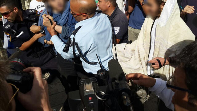 Police preventing rightwing Israelis from entering Temple Mount on Thursday (Photo: Yoav Zitun)