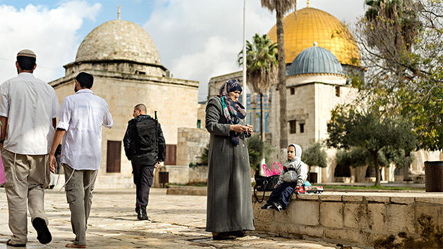 Jews and Arabs at Temple Mount Friday morning (Photo: Noa Castel)