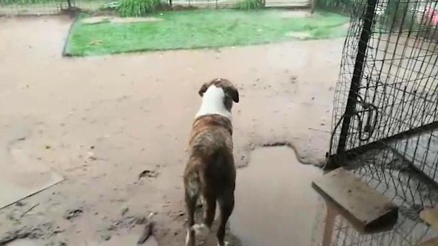 Strong winds blew away the tarps over the dogs' cages, while the flooded country roads in the area made it difficult for volunteers from the Haver and Let The Animals Live organizations to get to the shelter and extract the dogs from there.