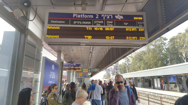 From the Tel Aviv HaShalom train station, trains were delayed bound for Rehovot by 45 minutes, to Modi’in by 50 minutes, to Be’er Sheva by 50 minutes, to Rishon LeZion by 40 minutes, and to Hod HaSharon by half an hour.