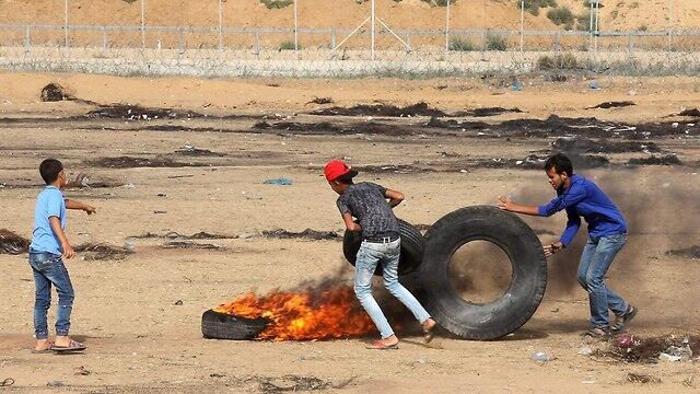 Some 1,600 Palestinian protesters have gathered in two locations along the Gaza border security fence. Most of the participants kept their distance and remained about 800 meters from the fence. Dozens of youths, however, advanced to around 300 meters distance and burned tires at one protest spot. East of Gaza City some youths came right up to the fence and tried to pull it apart.