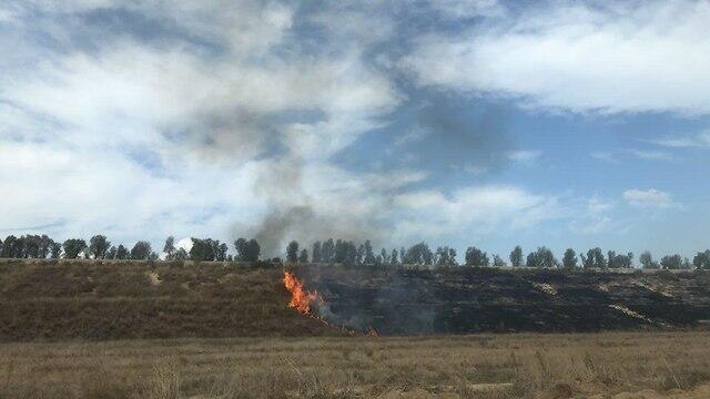 On Thursday, a massive fire broke out in the Nachal Shikma nature reserve as a result on an incendiary balloon. Four firefighting crews equipped with engineering tools operated at the scene in order to extinguish the flames.