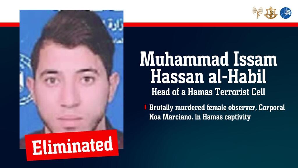 The IDF and the Shin Bet said Wednesday evening that they killed terrorist Muhammad Issam Hassan al-Habil, a Hamas cell commander who murdered surveillance soldier Noa Marciano while she was held hostage in Gaza.