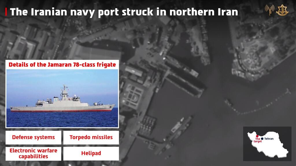 The IDF confirmed Thursday afternoon that it struck the Iranian navy in the Caspian Sea in northern Iran overnight, releasing dramatic footage of the bombing of missile ships.