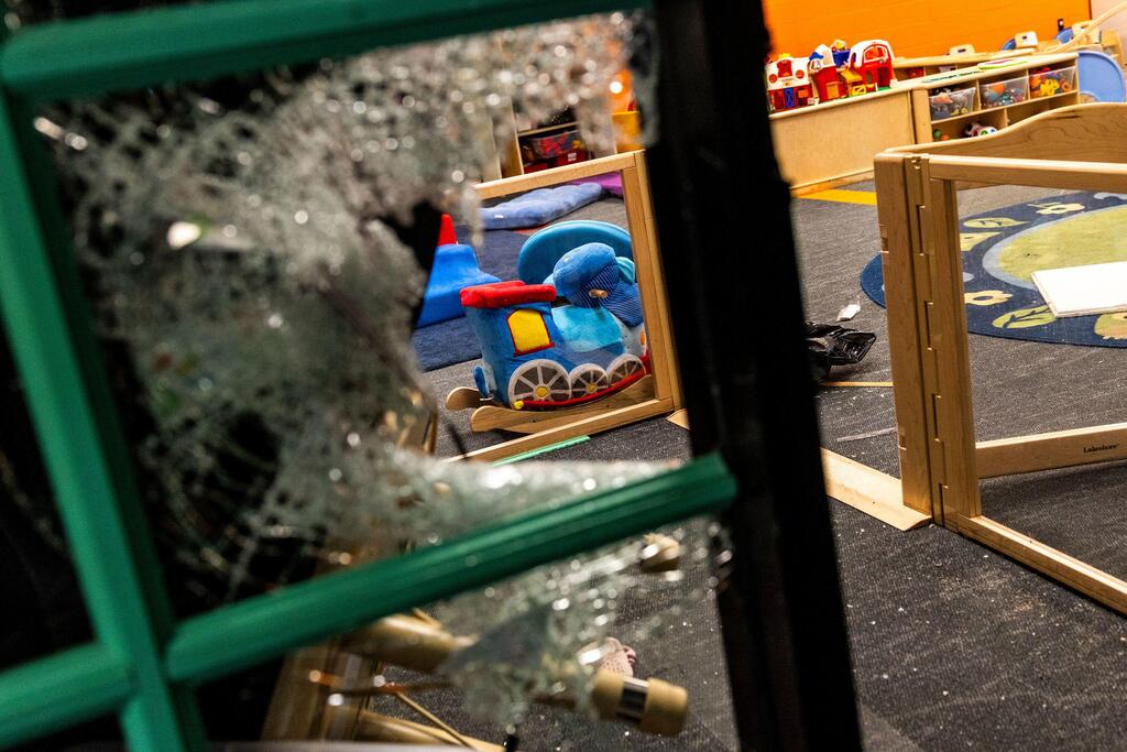 Sooty hallways after attack on Temple Israel synagogue in Michigan